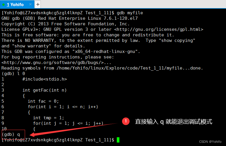 (gdb) q //退出 gdb 调试