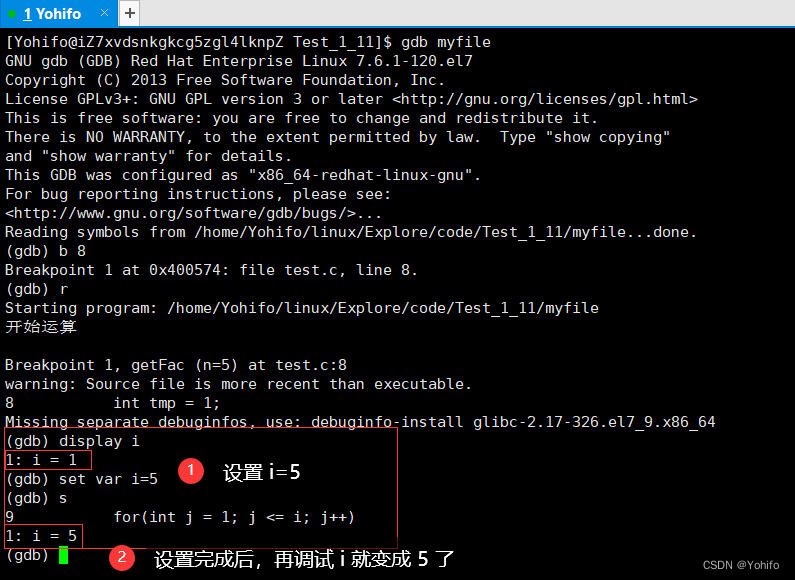 gdb 当然也支持一直监视变量,使用指令 display 即可