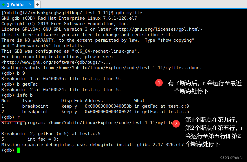 调试最重要的目的是帮助我们快速定位到问题,然后分析解决,此时断点就显得很重要了,如果没有断点,那只能一步步的调试,效率很低,下面就来看看如何让程序在 gdb 中跑起来及断点相关操作