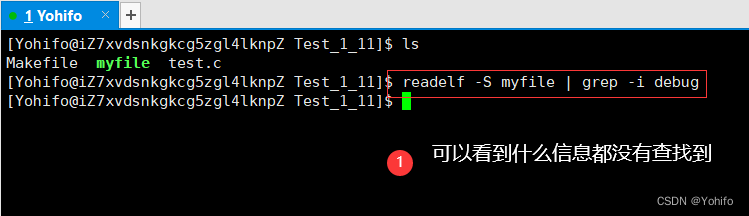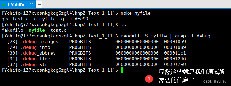 $ readelf -S myfile | grep -i debug //在默认生成的可执行程序 myfile 中查找调试信息