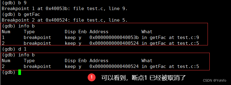 (gdb) d 断点编号 //由此可见断点编号的重要性