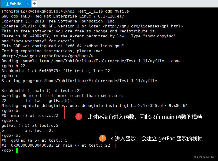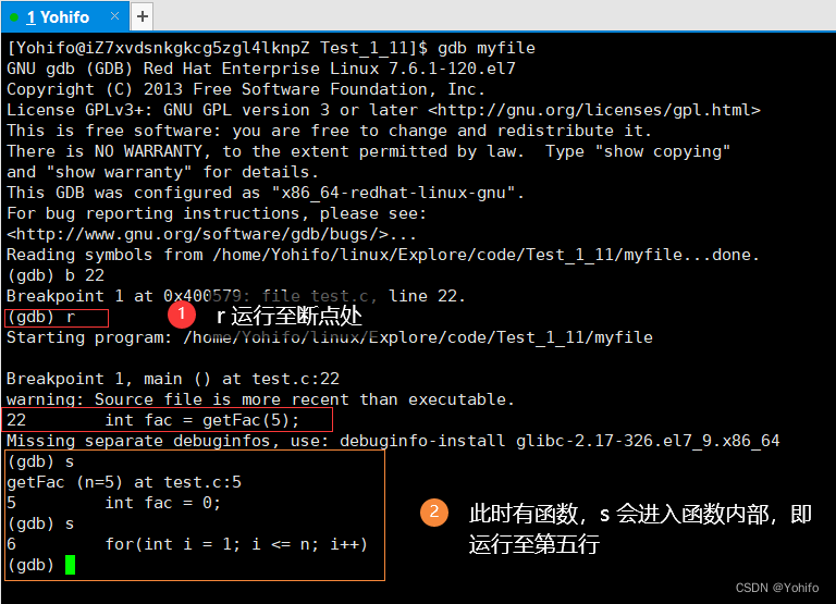 (gdb) s //单步运行,会进入函数内部