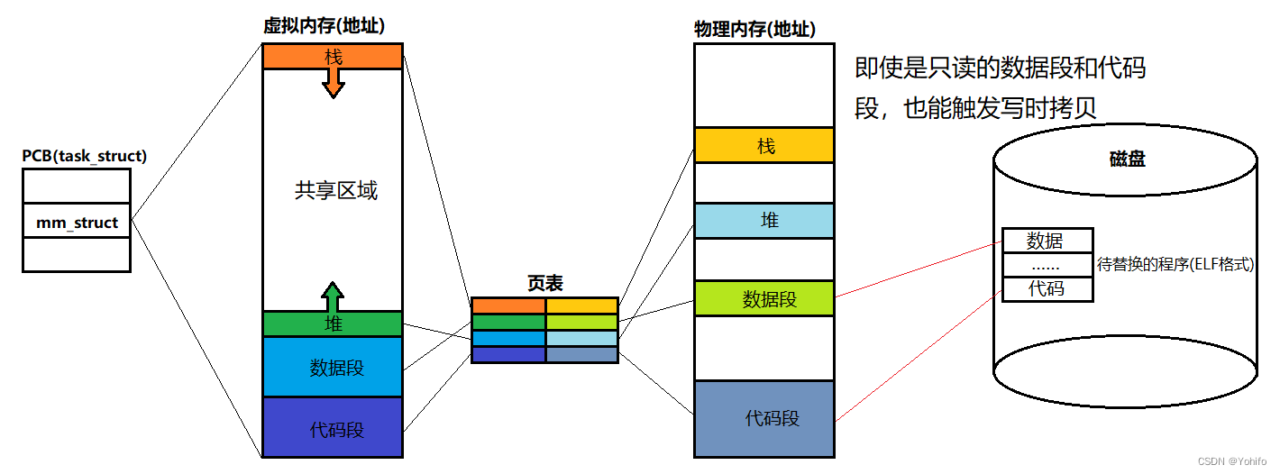 写时拷贝 在只读数据区也能触发,因为不能影响到父进程