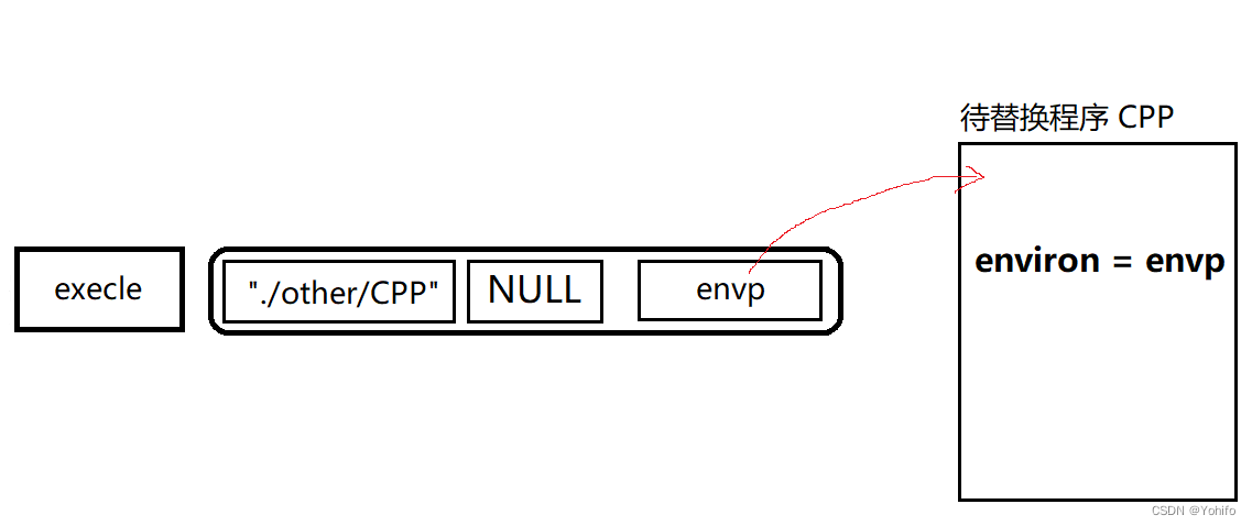 execle("./other/CPP", NULL, environ); //继承环境变量表