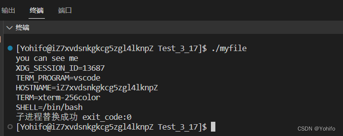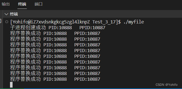 可以看到在进行程序替换后,子进程和待替换程序为同一个进程