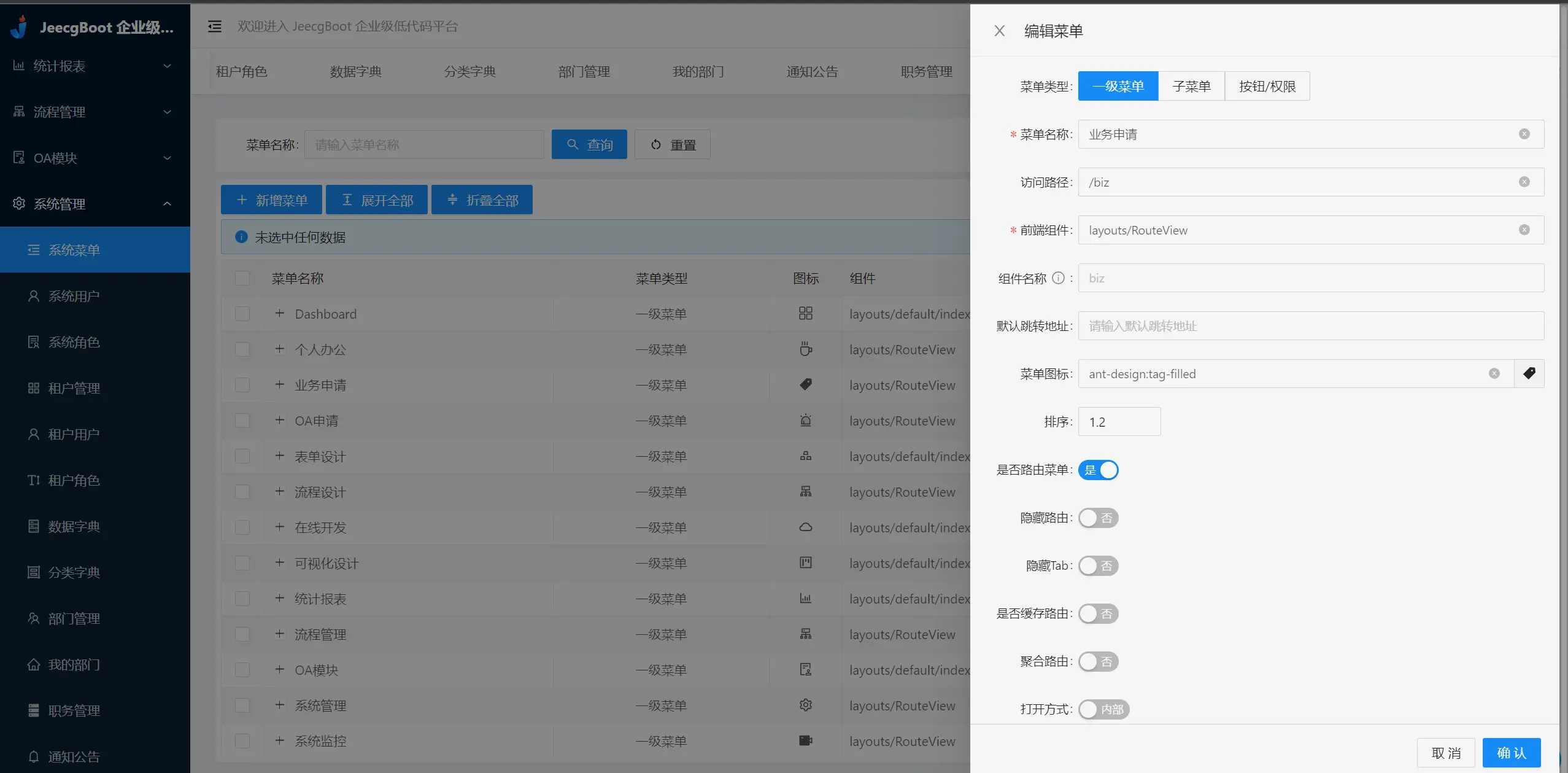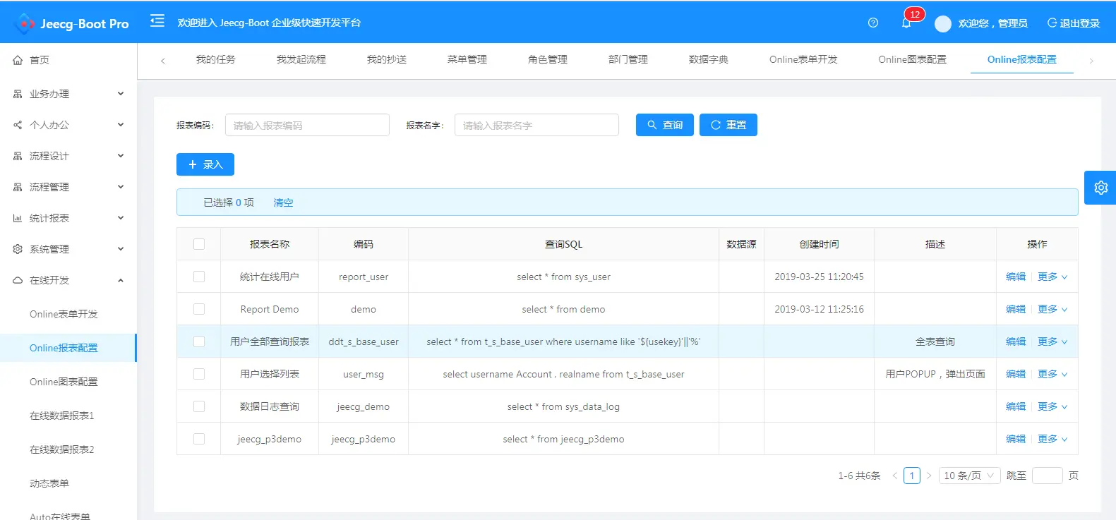 JeecgBoot是一款企业级的低代码平台!前后端分离架构 SpringBoot2.x,SpringCloud,Ant Design&Vue3,Mybatis-plus,Shiro,JWT 支持微服务。强大的代码生成器让前后端代码一键生成! JeecgBoot引领低代码开发模式(OnlineCoding-> 代码生成-> 手工MERGE), 帮助解决Java项目70%的重复工作,让开发更多关注业务。既能快速提高效率,节省成本,同时又不失灵活性!