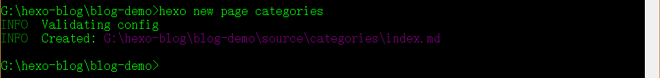 前往你的Hexo博客根目录,打开cmd命令窗口执行hexo new page categories。