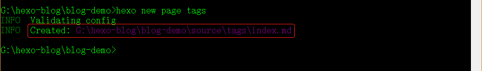 在【BlogRoot/source/】会生成一个含有index.md文件的tags文件夹。