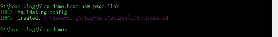---前往你的Hexo博客根目录,打开cmd命令窗口执行hexo new page link。
