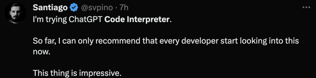我正在尝试ChatGPT代码解释器。到目前为止,我只能建议「每个开发者现在就开始研究它」。
