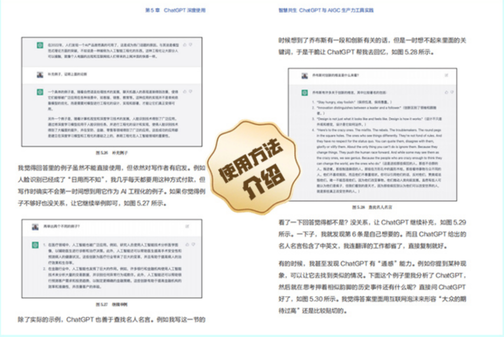 在本书第5章中,作者告诫我们要理性对待ChatGPT的问答结果,也让我们知道到在学习办公中,可以用ChatGPT来做什么。