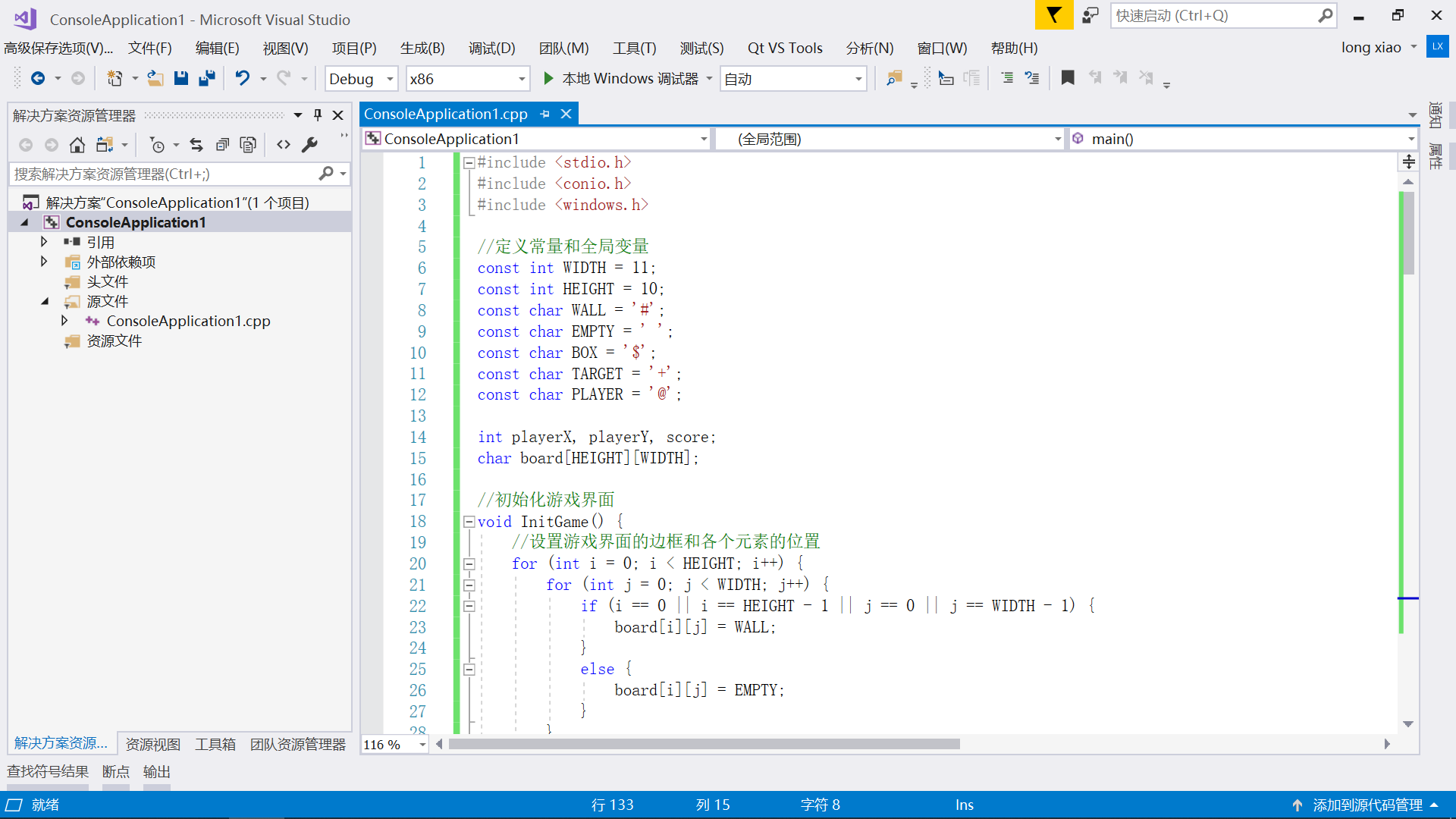 推箱子游戏是一款经典的益智小游戏,玩家需要控制主角角色将几个木箱按照要求推到指定位置。在控制台终端中,可以使用字符来表示不同的游戏元素,例如 ‘#’ 表示墙壁, ’ ’ 表示空地, ‘$’ 表示木箱, ‘@’ 表示主角角色, ‘+’ 表示完成任务的目标位置。