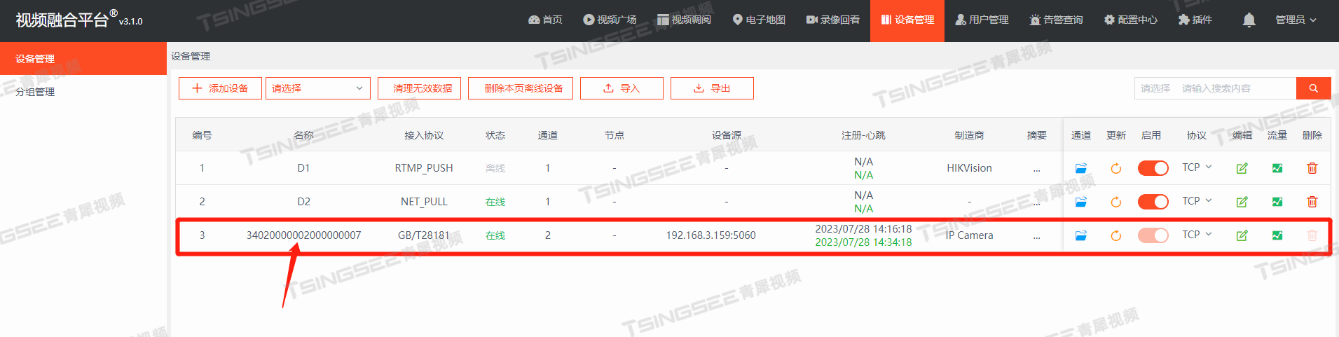 4)级联成功后的上级平台显示(以EasyCVR为例):