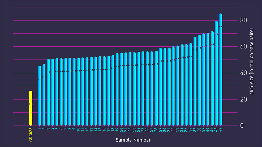 这张图显示了来自不同个体的Y染色体大小的巨大差异。来源:JANE CHA; JAX CREATIVE