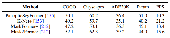 图8. 全景分割数据集的基准实验