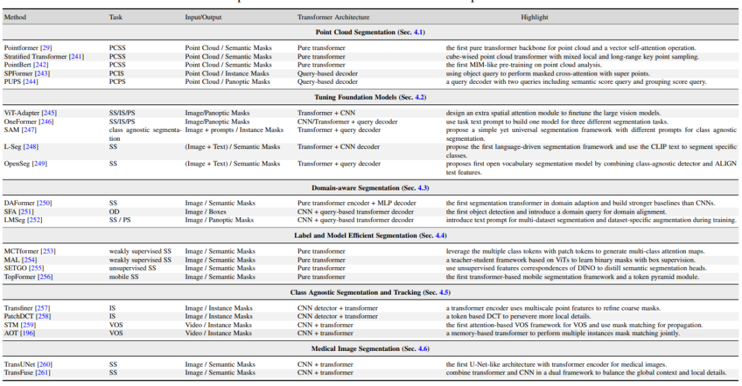 图4. Transformer-Based Segmentation方法总结与对比