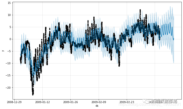 )我们可以用Prophet将我们的预测结果可视化。包括历史预测。