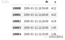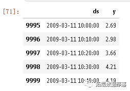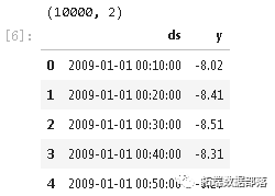 n_prophet = 10000Prophet模型需要得到一个有两列的DataFrame:一列名为ds,包含时间戳,一列名为y,包含要评估的时间序列。我们只看温度数据。
