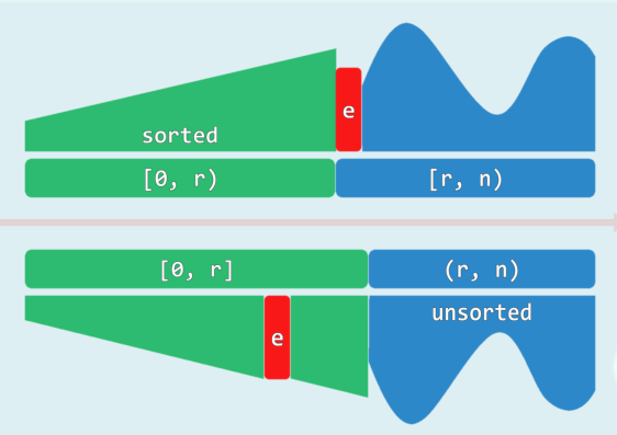 ListNodePosi(T) search( T const& e, int n, ListNodePosi(T) p) const; //有序区间查找