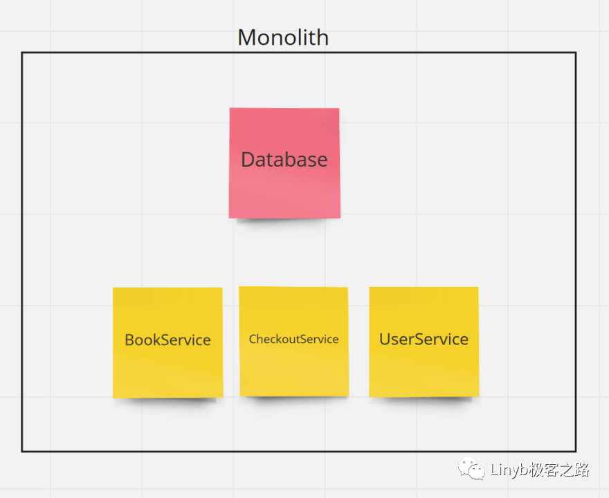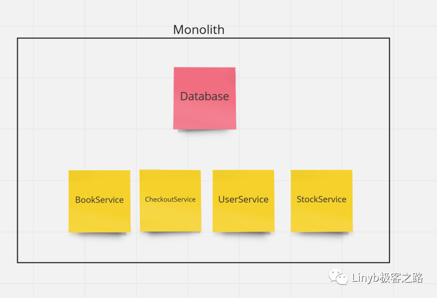 如果您的公司建立在单体monolith之上。由于您的业务知识在内部传播,因此这种单体monolith可能是您的最佳资产,但是由于多年的技术债务和团队在相互沟通的情况下发布代码,这些是脏的。 单体程序缓慢,不透明,容易出错,未经测试。发布新代码时开发人员和sysops团队都开始担心,因此最终会建立和定义繁重的流程以及漫长的发布周期和漫长的手动测试过程。这是因为我们需要安全地发布新版本,我们不能中断生产,因为恢复或回滚很困难。 但是,单体仍然存在,可以为您带来大部分收入,但也会影响团队的表现。您如何改善主要收入来源并优化团队以实现长期可预测性和业务发展?这是DDD派上用场的地方。 但是,在使用DDD之前,我们需要了解为什么单体程序仍在工作并为大量流量提供服务。因为单体本身不是一个错误的根源,问题出在耦合造成大泥球。 单体非常便宜且用途广泛。单体架构能够长期存在的原因是,单体架构中的决策在中期是可恢复的。因为数据和代码在一个地方,所以重构更简单(可以使用您最喜欢的IDE来完成),并且数据传输便宜。例如,让我们从以下用例开始: 我们是像Amazon这样的在线购物平台,并且我们出售图书。在产品的第一个迭代期间,我们不会验证仓库中书籍的库存,因为我们没有收到那么多的采购订单,因此我们可以手动修复损坏的订单。我们最终得到以下架构图。