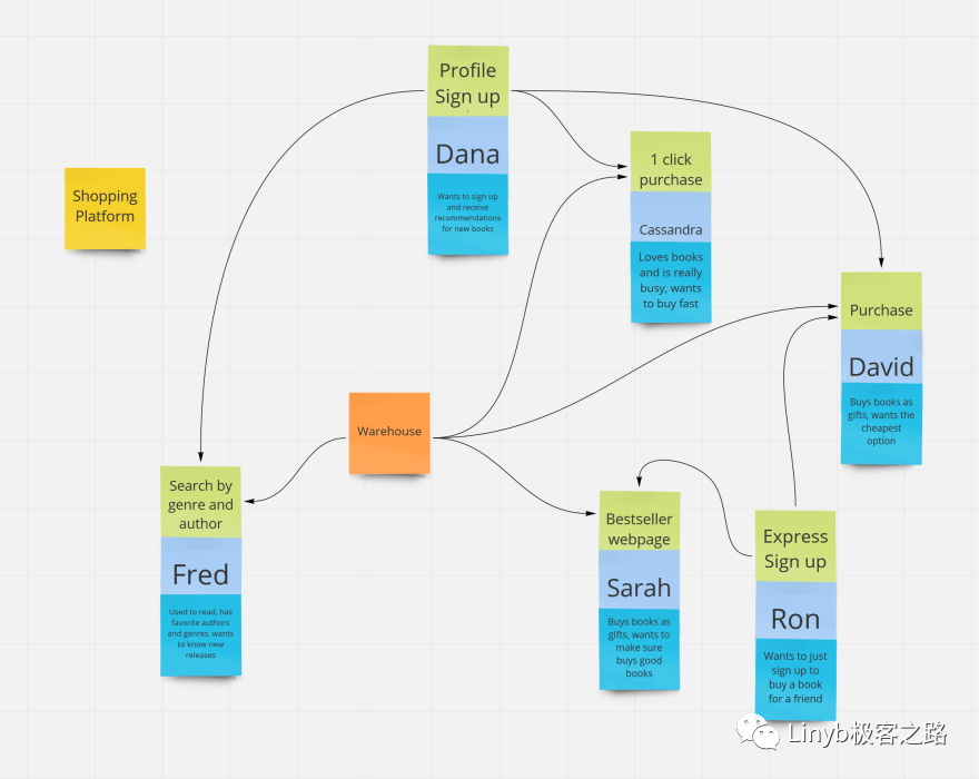 我会做的最基本的建议是根据(业务领域)知识而非数据来划分您的架构。公司如何构造知识完全取决于人员和他们所从事的业务,但是可以尝试几种廉价的探索模式。 要应用这些模式,我们需要将业务视为业务平台:我们没有一个产品,而是我们有一套产品。这些产品的定义是适用于角色的一组功能。例如,基于此模式,我们可以定义购物平台,如下图所示: