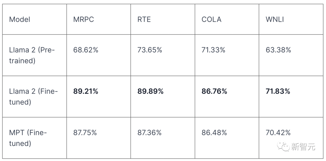 此外,Scale还使用LLM Engine微调和评估LLAMA-2在GLUE(一组常用的NLP基准数据集)的几个任务上的性能。
