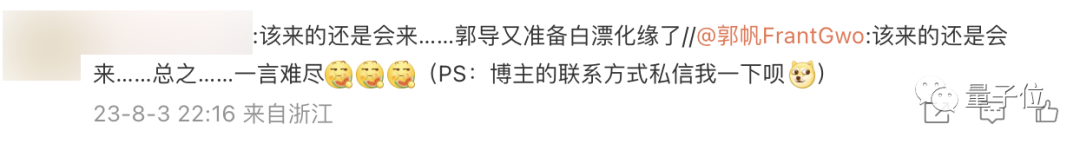 郭帆在微博上被@之后,直接出来在线求作者联系方式,并表示: