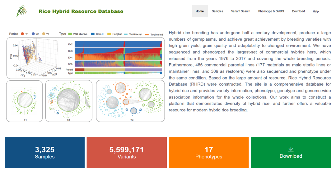 作者把所有数据都呈现在http://ricehybridresource.cemps.ac.cn/#/ 数据平台上,提供更好的资源分享和展示。