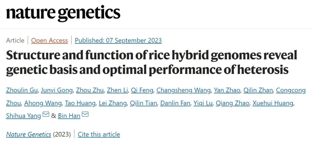 2023年9月7日,中国科学院分子植物科学卓越创新中心韩斌团队在Nature Genetics在线发表了题为Structure and function of rice hybrid genomes 、