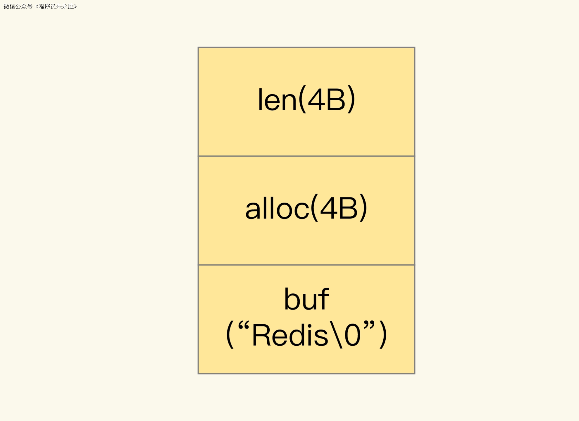 int alloc; // 分配的内存空间大小 也占个 4 字节,表示 buf 的实际分配长度,一般大于 len。
