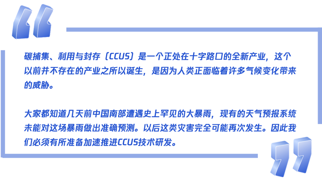 “在(碳中和)这个大盘子中我们要做怎样的事情?相比于一些已经产业化成熟的领域,我们更希望支持一些还在很早期、还存在产学研结合问题、同时又十分重要的低碳技术领域。CCUS就处于这个关键的时间窗口,我们希望以灵活的催化性资金和资源,推动前沿技术更快地走向规模化应用。”