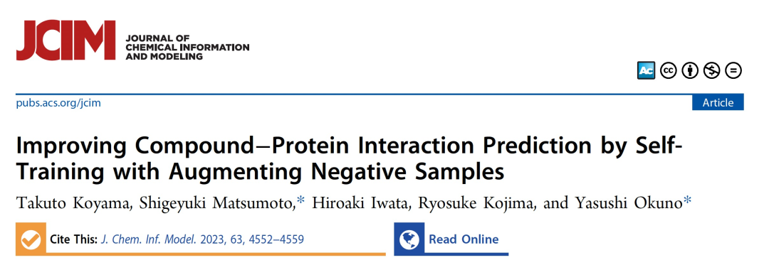 Koyama, T., Matsumoto, S., Iwata, H., Kojima, R., & Okuno, Y. (2023). Improving Compound-Protein Interaction Prediction by Self-Training with Augmenting Negative Samples.