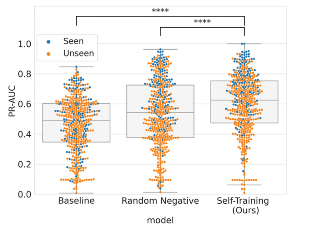 为了克服这些限制,作者提出了一种新的自我训练方法,有效增加负样本。这种方法被应用于基于图的CPI预测模型,并成功地提高了模型的性能,包括泛化能力。