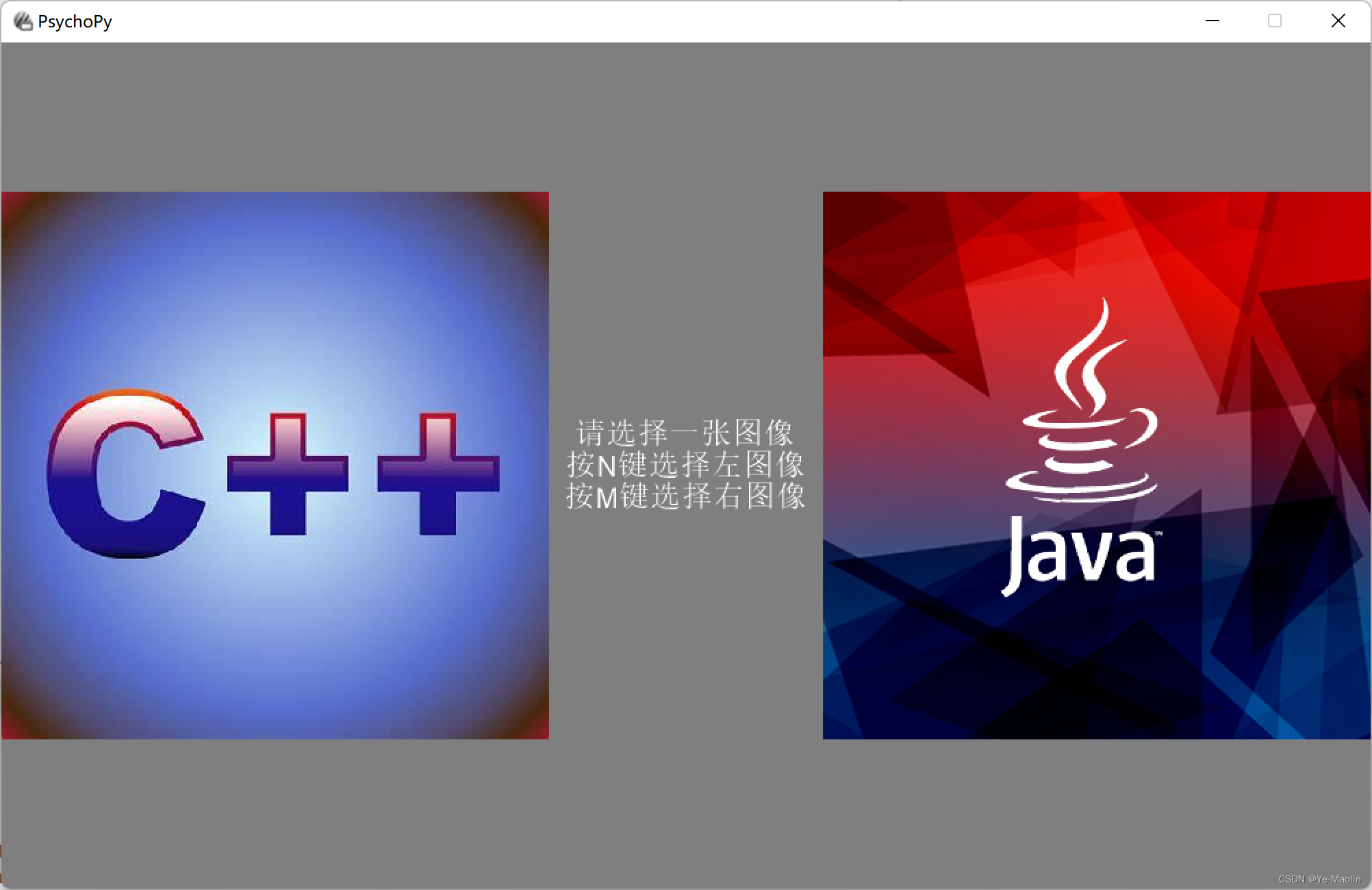 prompt_text = visual.TextStim(win, text="请选择一张图像\n按N键选择左图像\n按M键选择右图像", pos=(0, 0))