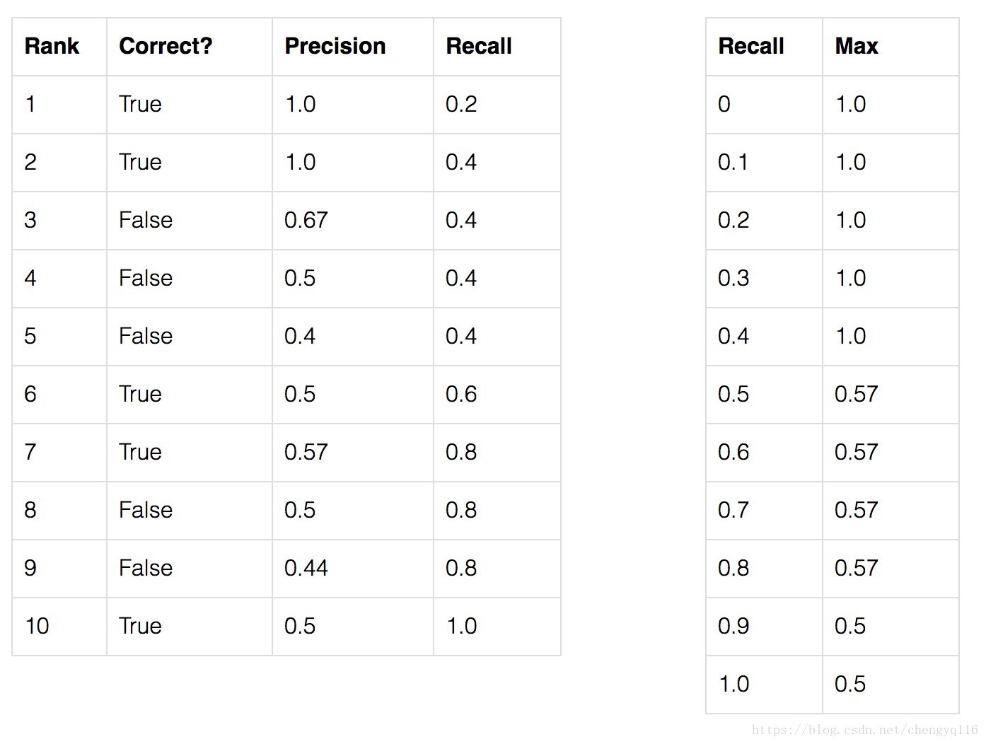 在这个例子中,AP =(5×1.0 + 4×0.57 + 2×0.5)/11