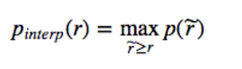AP的概念可以看作是在精确回忆图(橙色图)下找到区域,但通过平滑之字形来近似计算。召回率 ȓ 取值 0, 0.1, 0.2, …, 0.9 and 1.0 ,对任意大于ȓ的召回率用最大精度替换精度。
