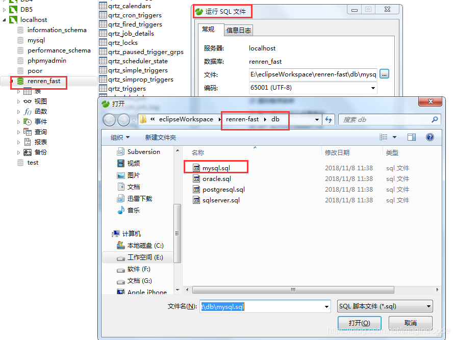 然后右键,选择“运行SQL”(在renren-fast后端项目的根目录下方有一个db文件夹,里面有Mysql文件):