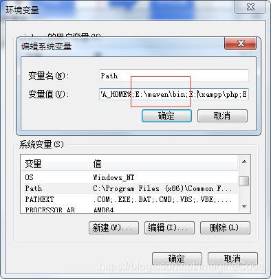 在变量名Path 的值中追加你前面下载的maven的bin路径,如E:\maven\bin;