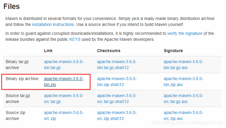 首先,先到这个地址下载需要的文件: http://maven.apache.org/download.cgi