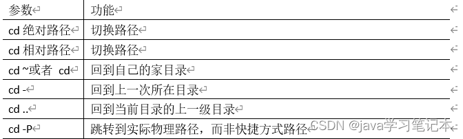 切换目录 cd:Change Directory 切换路径 基本语法: cd [参数] 参数说明