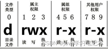 如果没有权限,就会出现减号[ - ]而已。从左至右用0-9这些数字来表示: (1)0 首位表示类型 在Linux中第一个字符代表这个文件是目录、文件或链接文件等等