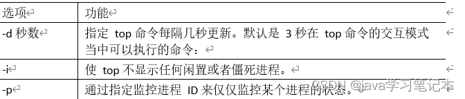 实时监控系统进程状态 1) 基本命令 top [选项] 2) 选项说明