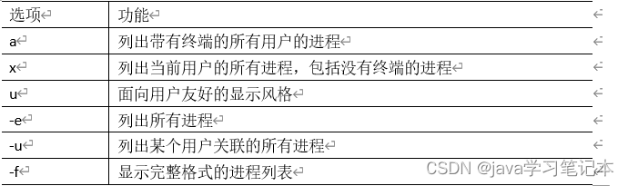 查看当前系统进程状态 ps:process status 进程状态 1)基本语法 ps aux | grep xxx (功能描述:查看系统中所有进程) ps -ef | grep xxx 2)选项说明 (功能描述:可以查看子父进程之间的关系)