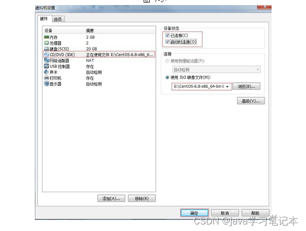 挂载/卸载 对于Linux用户来讲,不论有几个分区,分别分给哪一个目录使用,它总归就是一个根目录、一个独立且唯一的文件结构。 Linux中每个分区都是用来组成整个文件系统的一部分,它在用一种叫做“挂载”的处理 方法,它整个文件系统中包含了一整套的文件和目录,并将一个分区和一个目录联系起来, 要载入的那个分区将使它的存储空间在这个目录下获得。 1) 挂载前准备(必须要有光盘或者已经连接镜像文件),