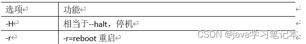 案例实操 (1) 将数据由内存同步到硬盘中 [root@hadoop100桌面]#sync (2) 重启 [root@hadoop100桌面]# reboot (3) 停机(不断电) [root@hadoop100桌面]#halt (4) 计算机将在 1 分钟后关机,并且会显示在登录用户的当前屏幕中 [root@hadoop100桌面]#shutdown -h 1 ‘This server will shutdown after 1 mins’ (5) 立马关机(等同于 poweroff) [root@hadoop100桌面]# shutdown -h now (6) 系统立马重启(等同于 reboot) [root@hadoop100桌面]# shutdown -r now