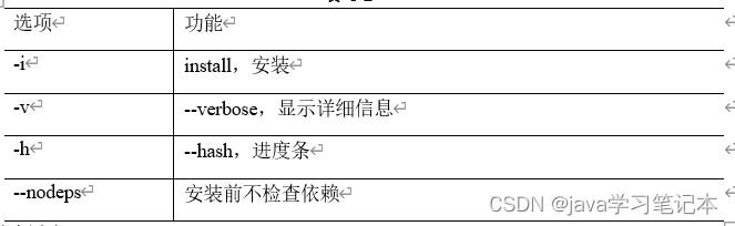 1) 基本语法 rpm -ivh RPM 包全名 2) 选项说明