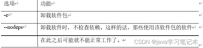 1) 基本语法 (1) rpm -e RPM软件包 (2) rpm -e --nodeps 软件包 2) 选项说明