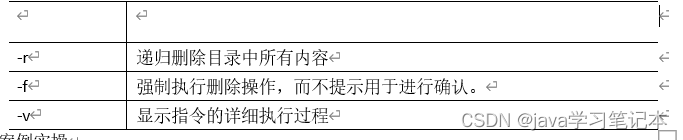 删除文件或目录 基本语法 : rm [选项] deleteFile,(功能描述:递归删除目录中所有内容) 选项说明