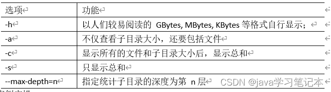 查看文件和目录占用的磁盘空间 du: disk usage 磁盘占用情况 1) 基本语法du 目录/文件(功能描述:显示目录下每个子目录的磁盘使用情况) 2) 选项说明
