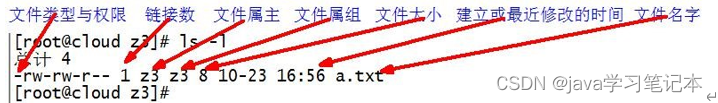 Linux系统是一种典型的多用户系统,不同的用户处于不同的地位,拥有不同的权限。为了保护系统的安全性,Linux系统对不同的用户访问同一文件(包括目录文件)的权限做了不同的规定。在Linux中我们可以使用ll或者ls -l命令来显示一个文件的属性以及文件所属 的用户和组。 1) 从左到右的 10 个字符表示,如图所示